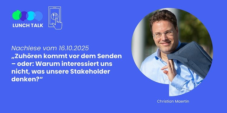 PR-Verantwortliche sollten sich fragen, was die Menschen „da draußen umtreibt“, so die Forderung aus dem Lunch Talk am 16. Oktober. Christian Maertin, Head of Corporate Communications bei Bayer, sprach mit Dr. Andreas Möller.