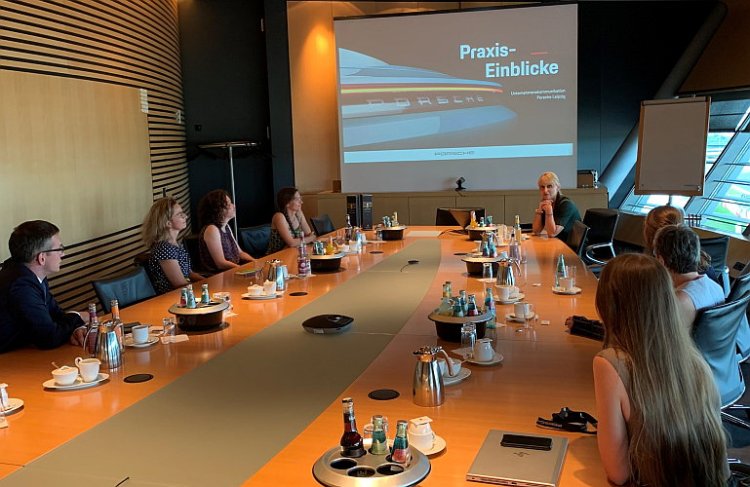 Nach der Führung durch die „heiligen Hallen“ gab Kristin Bergemann einen Überblick über die tägliche Kommunikationsarbeit bei Porsche Leipzig. Der sächsische Standort des Automobilherstellers verfügt über eine eigene, rund fünfköpfige Kommunikationsabteilung, die für die gesamte Standort- und Werkskommunikation nach innen und außen verantwortlich ist und dabei ein breites Aufgabenspektrum übernimmt. Von „Klassikern“ wie der Mitarbeiterkommunikation und Pressearbeit bis hin zu den Themen Events, CSR/Spenden und politische Kommunikation.