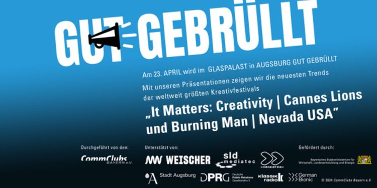 Am 23. April findet mit „Gut gebrüllt – Creativity matters“ eine Trend-Veranstaltung aus der Kreativwirtschaft in Augsburg statt. Organisiert von den CommClubs Bayern, gefördert durch das Bayerische Wirtschaftsministerium, unterstützt von der Stadt Augsburg sowie der DPRG.